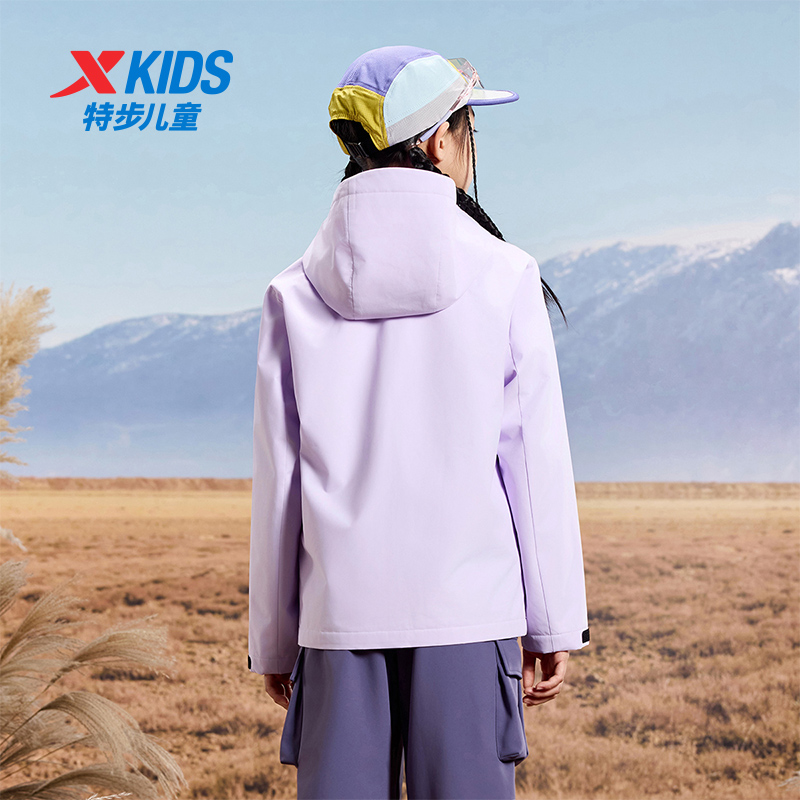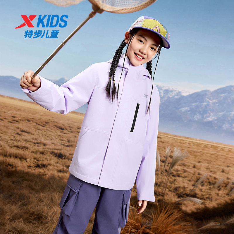 防风冲锋衣户外三防运动风衣 新款 特步童装 儿童三合一外套女童秋季