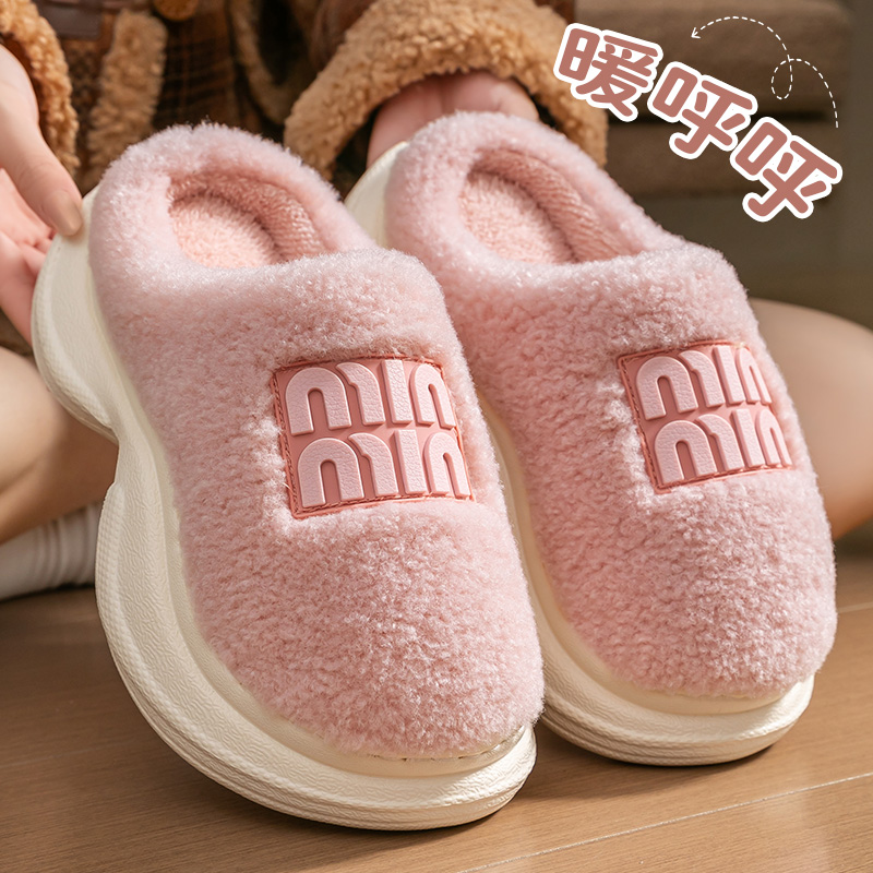 室内家居防滑保暖增高毛毛拖鞋 厚底棉拖鞋 秋冬季 2025新款 女冬 女款