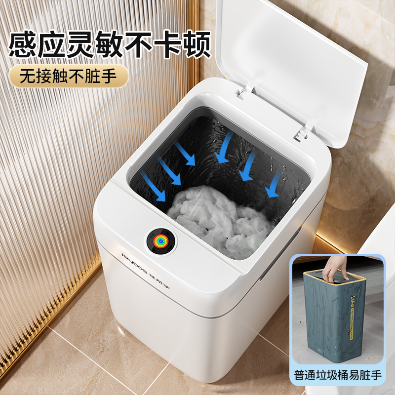 佳帮手卫生间垃圾桶家用2025新款 厕所专用夹缝带盖客厅厨房大容量