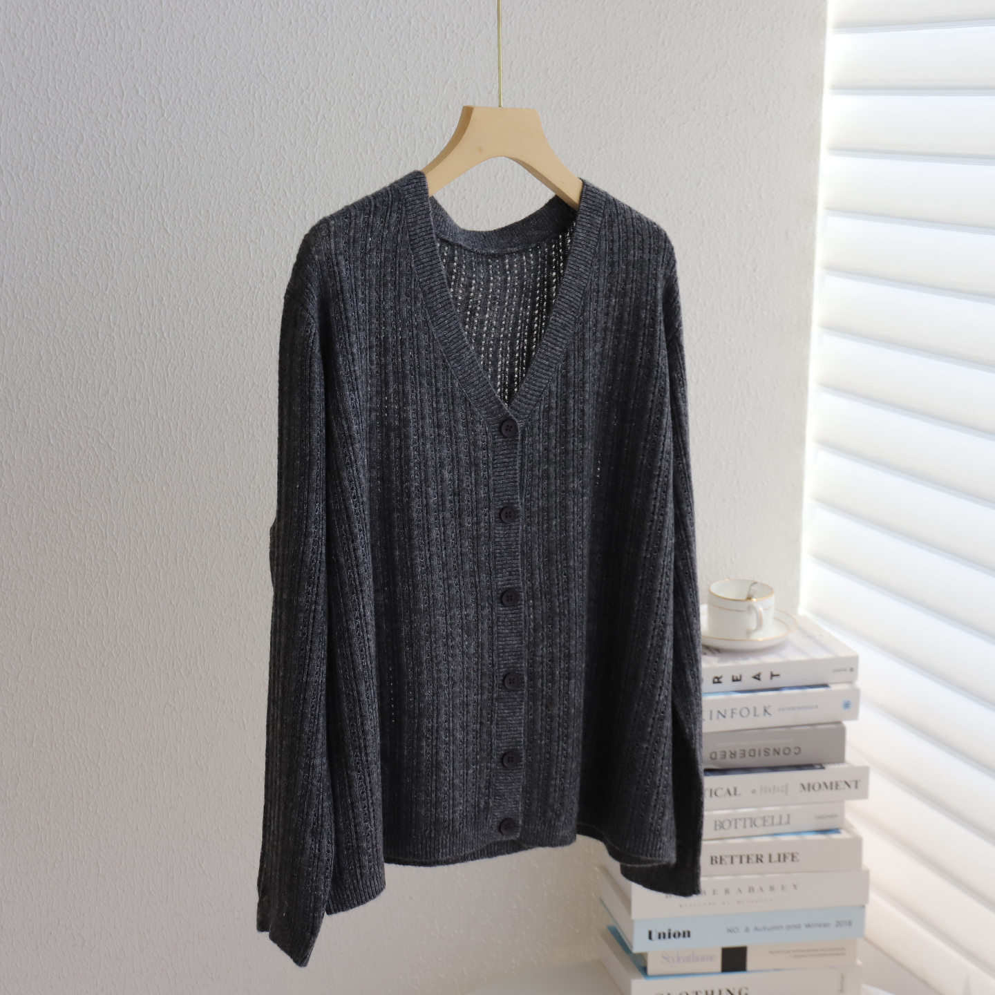 2025早秋超好看单穿外搭V领长袖 女宽松显瘦毛衣外套上衣 针织开衫