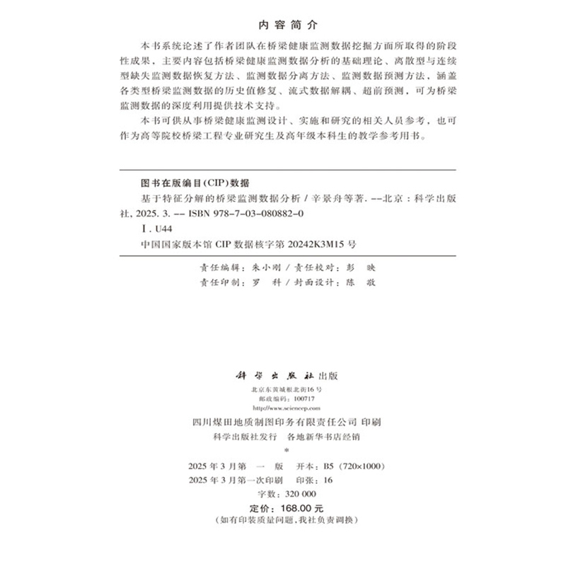 科学出版 9787030808820 基于特征分解 姜言 唐启智 辛景舟 包邮 桥梁监测数据分析 社 周建庭 正版