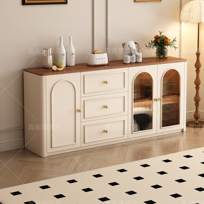 实木圆弧餐边柜一体靠墙储物柜2025新款 客厅家用茶水柜置物柜定制