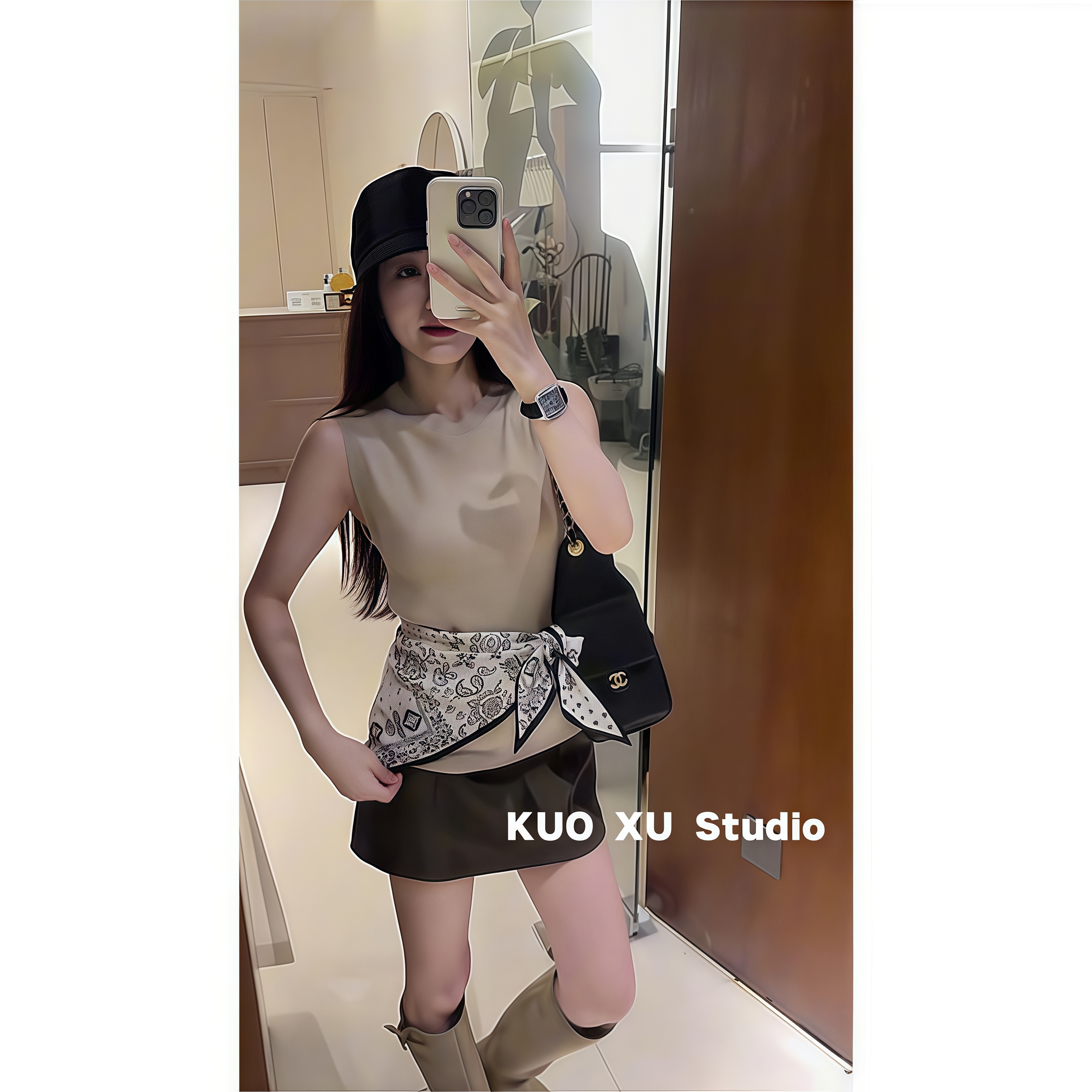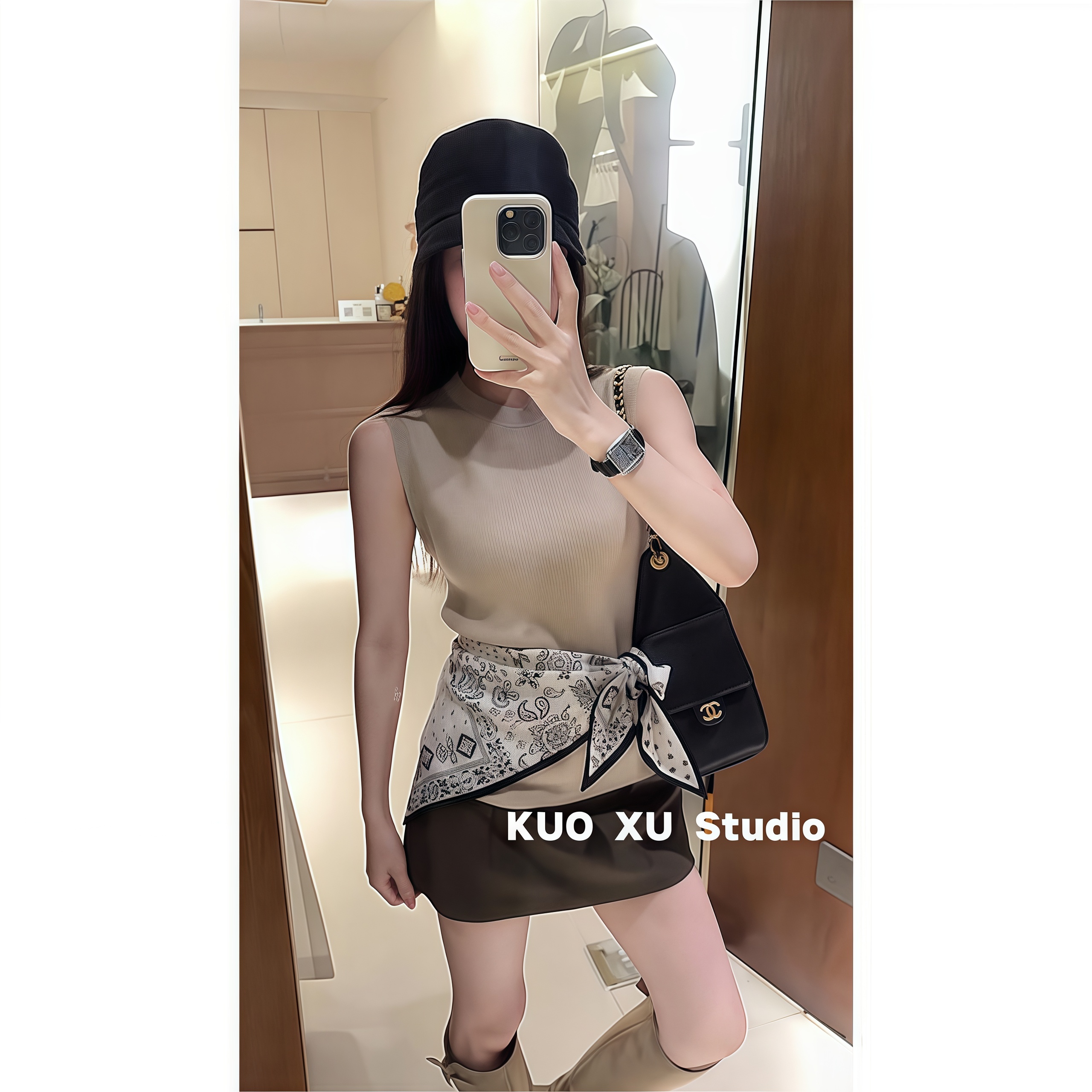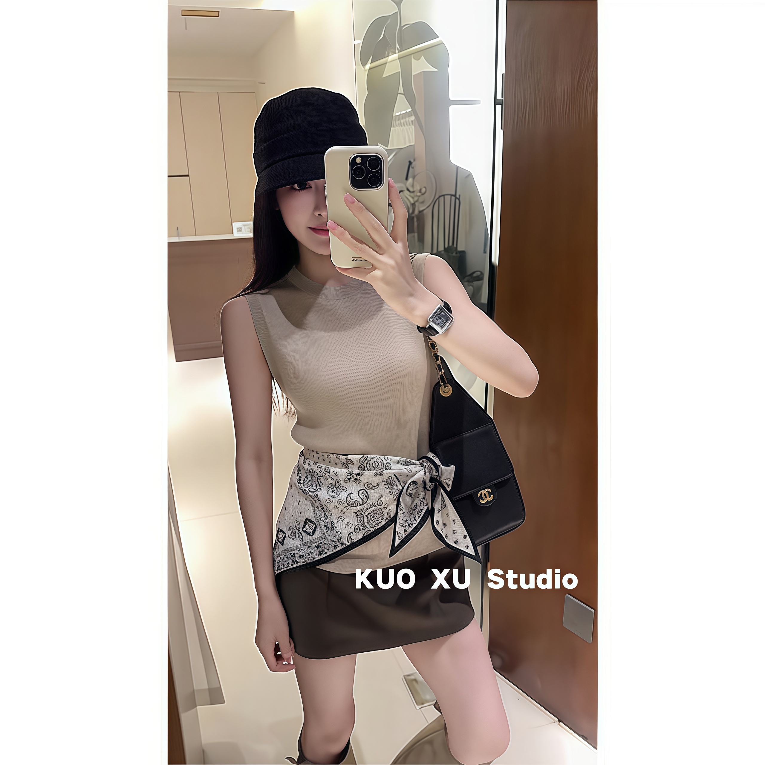 上衣针织背心女高级感极简风穿搭a字半身裙短裙套装 早秋法式 无袖