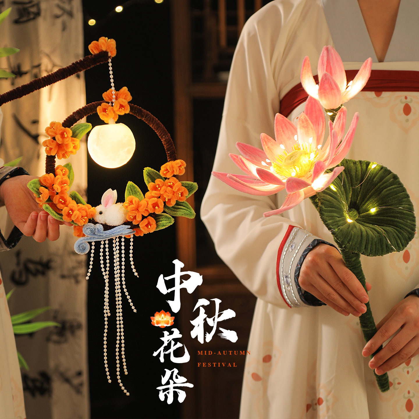中秋节灯笼儿童手提兔子花灯挂饰扭扭棒幼儿园手工diy荷花灯汉服