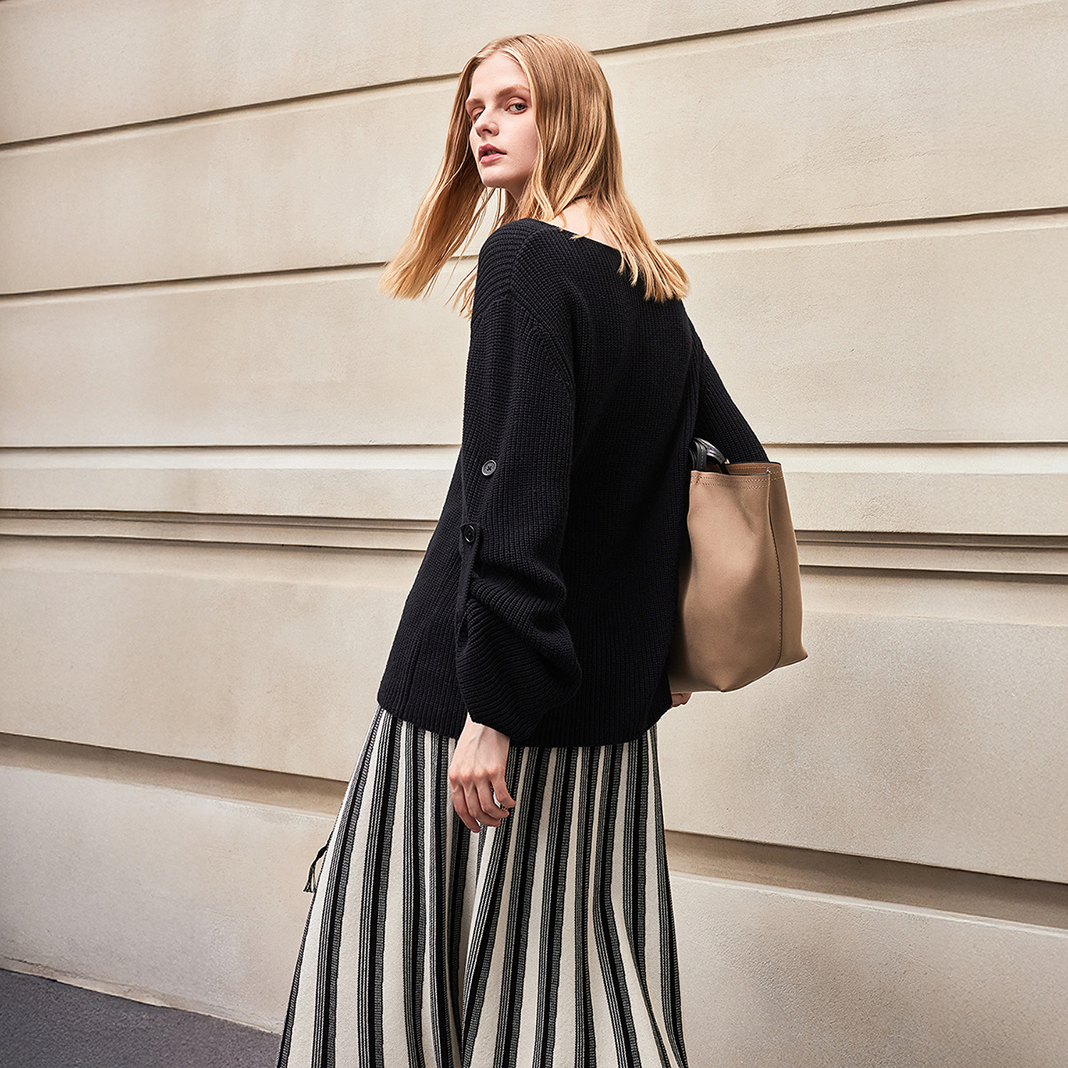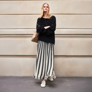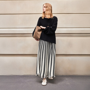 百搭优雅气质设计感慵懒冬日女圆领毛针织衫 BCBG25早秋新款 时尚