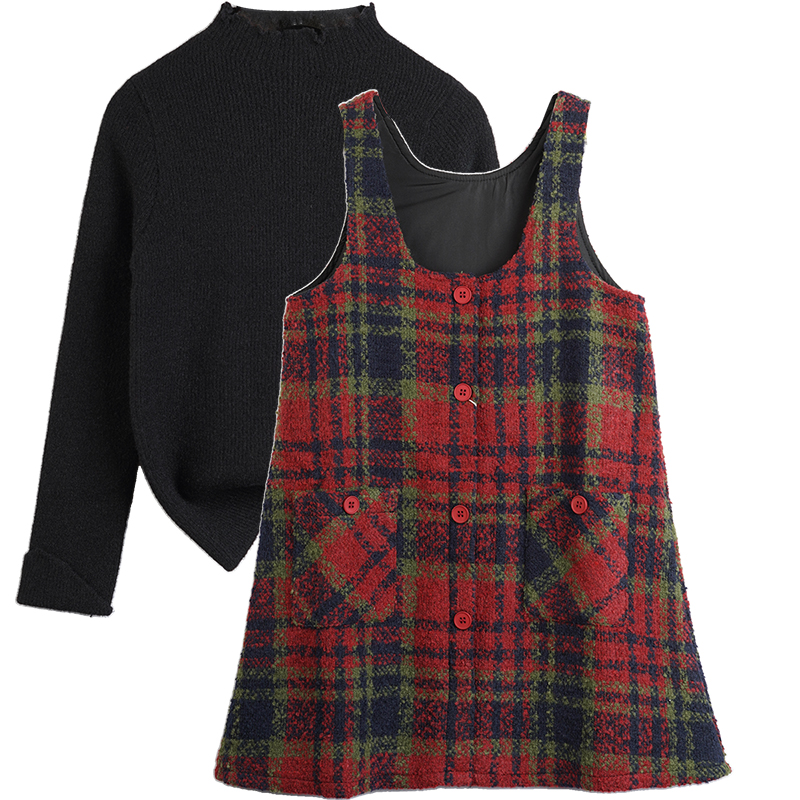 女童套装 洋气格子背带裙黑色打底毛衣高级质感两件套 裙儿童秋冬装