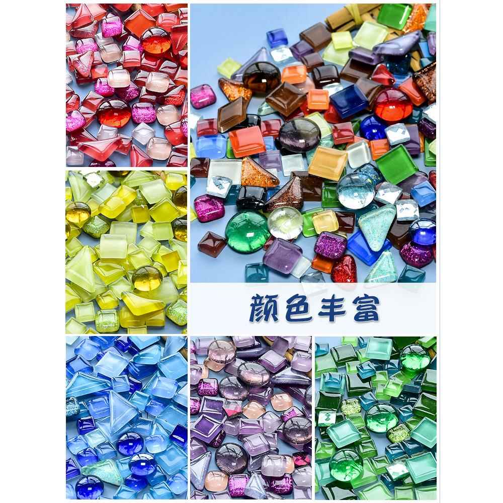 混马赛克diy手工自由石创意制作材料彩色水晶玻璃散颗粒装 饰自粘
