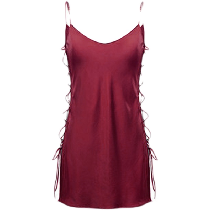 性感睡衣女2025年春夏季 纯欲风冰丝绸带胸垫蕾丝吊带睡裙睡袍 新款
