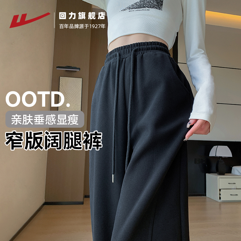 休闲阔腿卫裤 高腰垂感显瘦春秋直筒窄版 女夏2025年新款 黑色运动裤