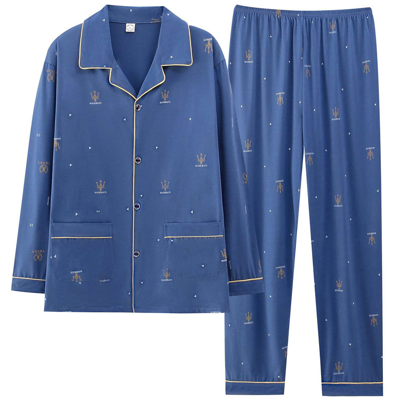 长袖 可外穿家居服套装 开衫 新款 男 纯色全棉秋冬季 雅鹿纯棉睡衣男士