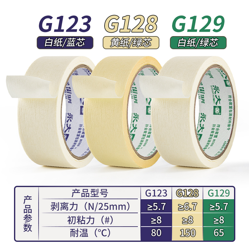 美纹纸胶带美术生专用贴边画画喷漆遮蔽保护膜汽车美容美缝纸胶带美工手撕不留胶墙面无痕婚房粘贴神器弱粘性
