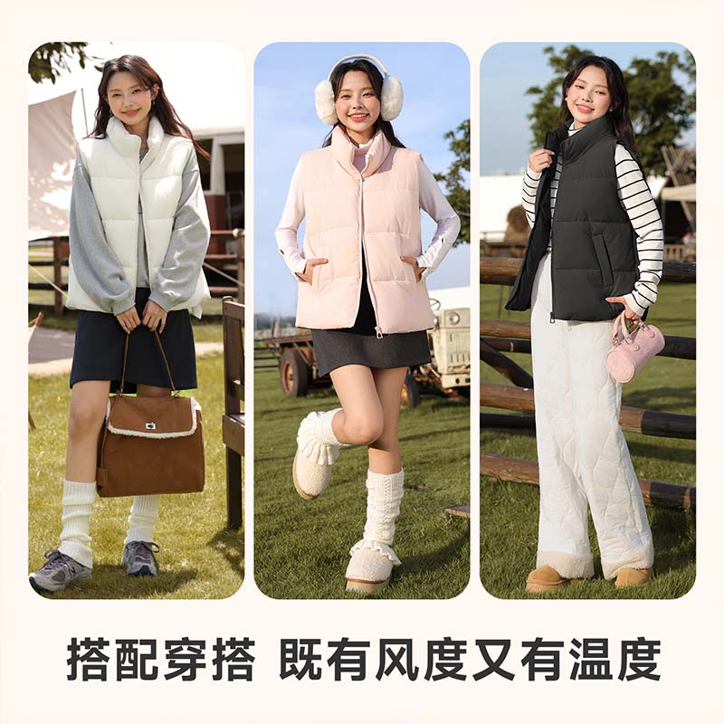 班尼路白色马甲棉服女2025新款 外套小个子背心上衣M 秋冬保暖无袖