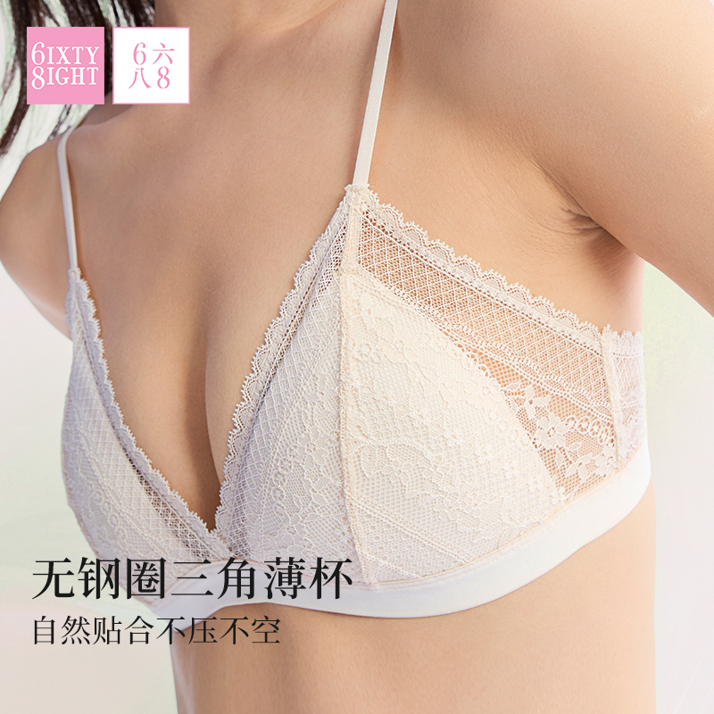 68蕾丝三角杯新品 三角杯内衣性感细肩带无钢圈文胸罩 甜美法式