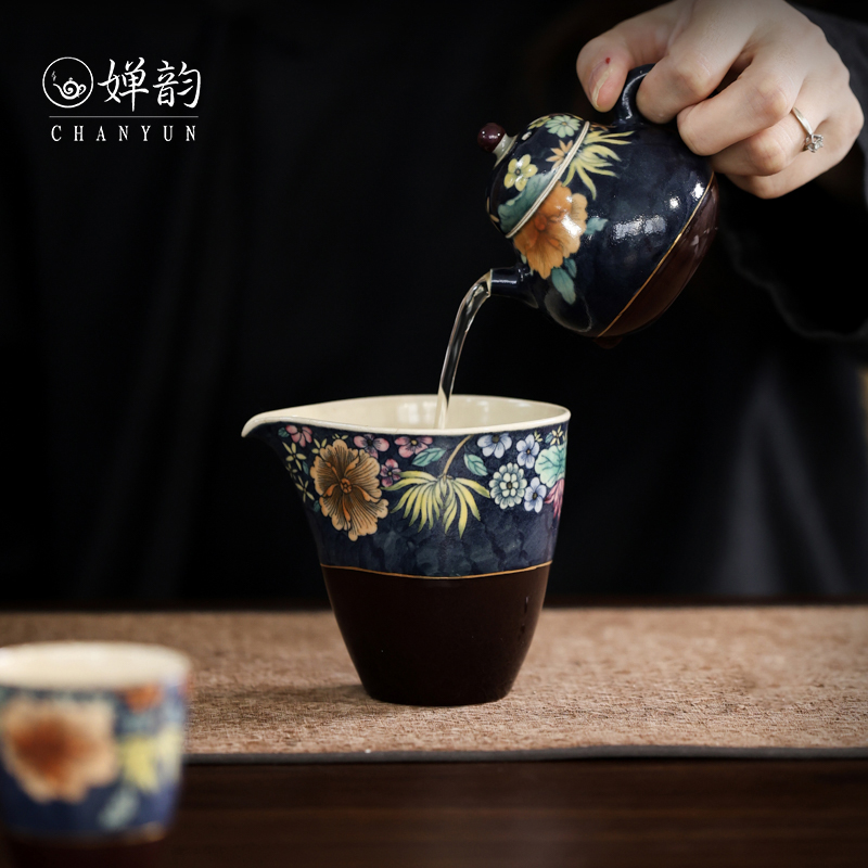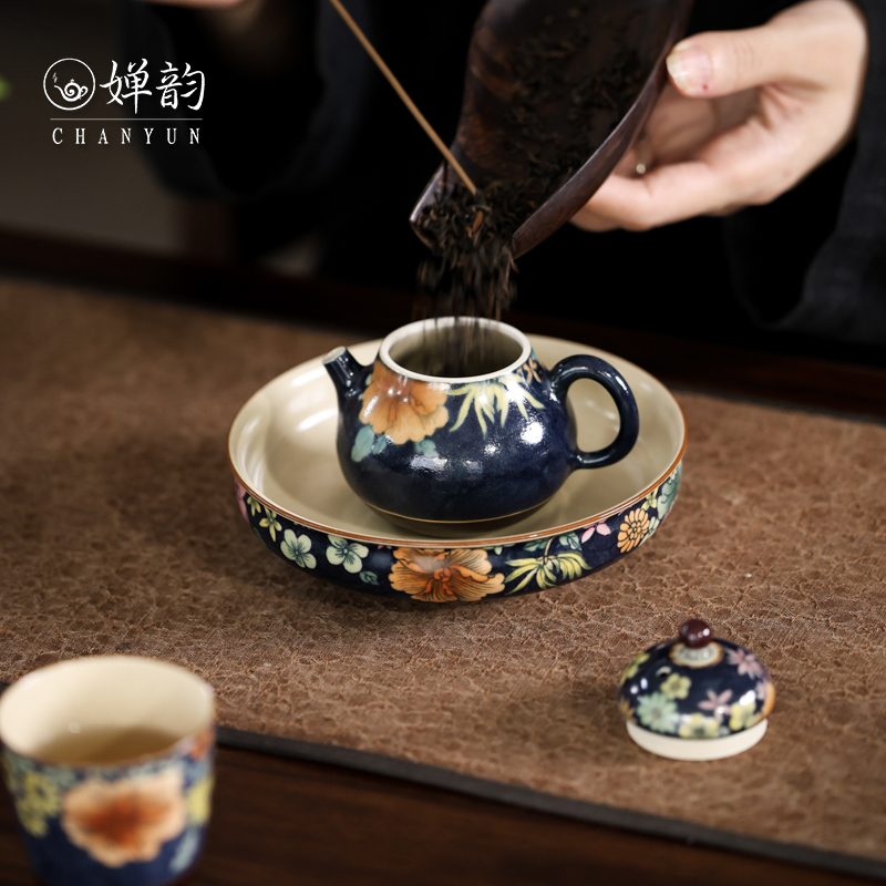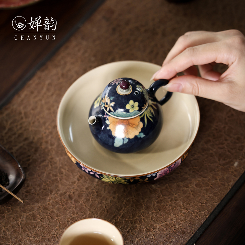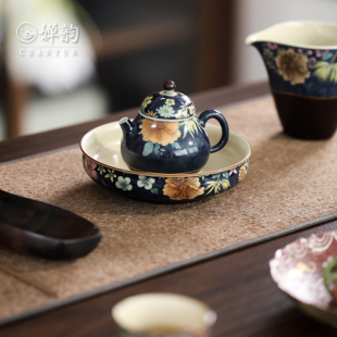 婵韵 梵田里拙溪万花梨壶茶壶茶杯壶承单个手绘复古高档家用茶具