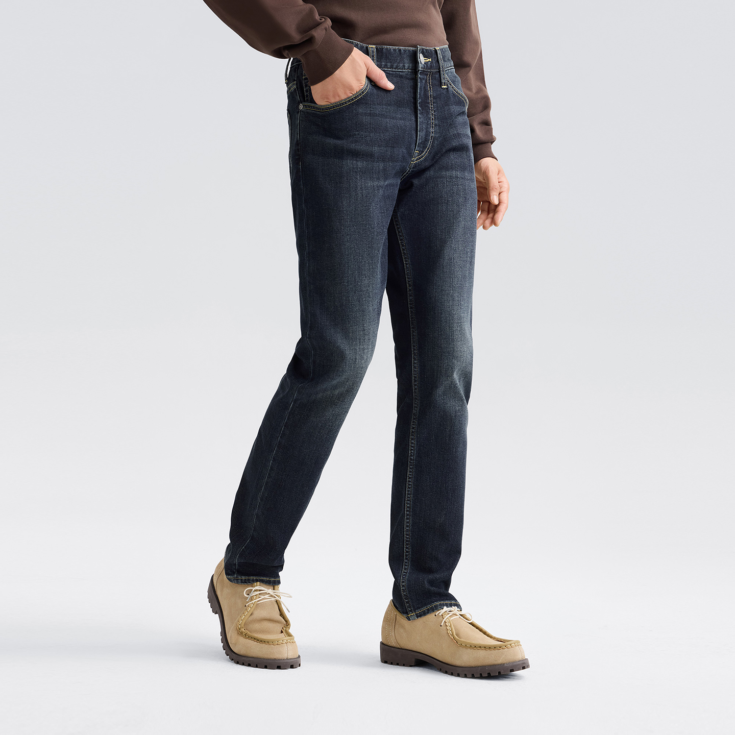 中腰直筒磨毛深蓝色男保暖牛仔裤 Lee25冬新723修身 张凌赫代言