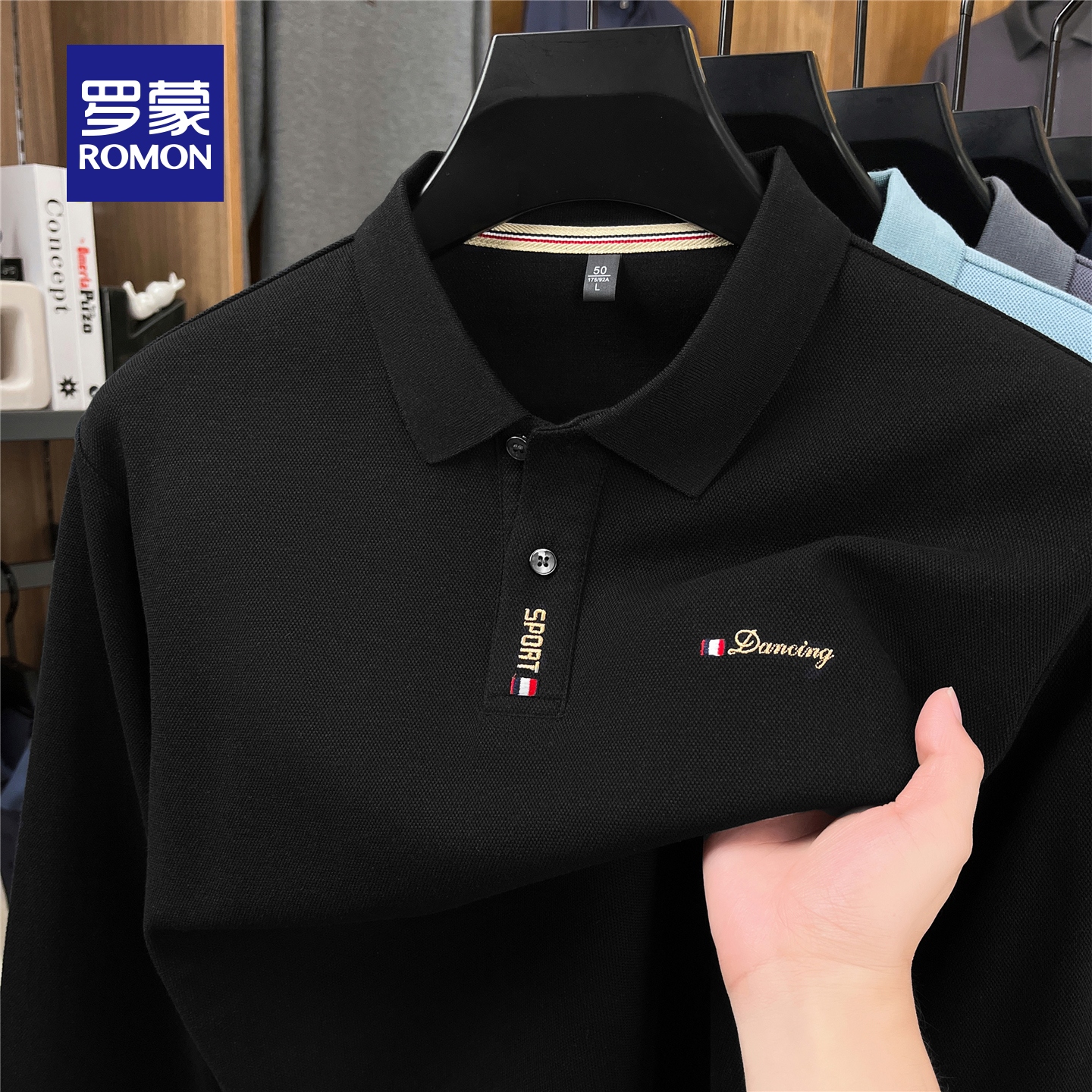 新款 体恤胖子宽松免烫抗皱POLO衫 大码 无感空气格翻领长袖 男士 秋季