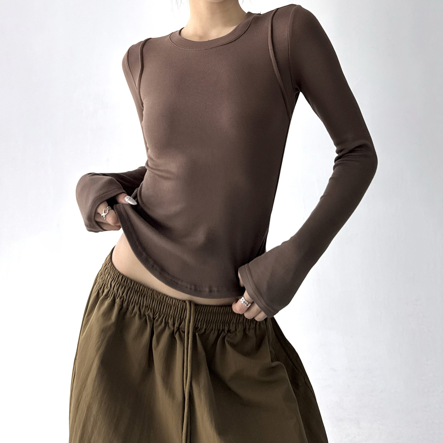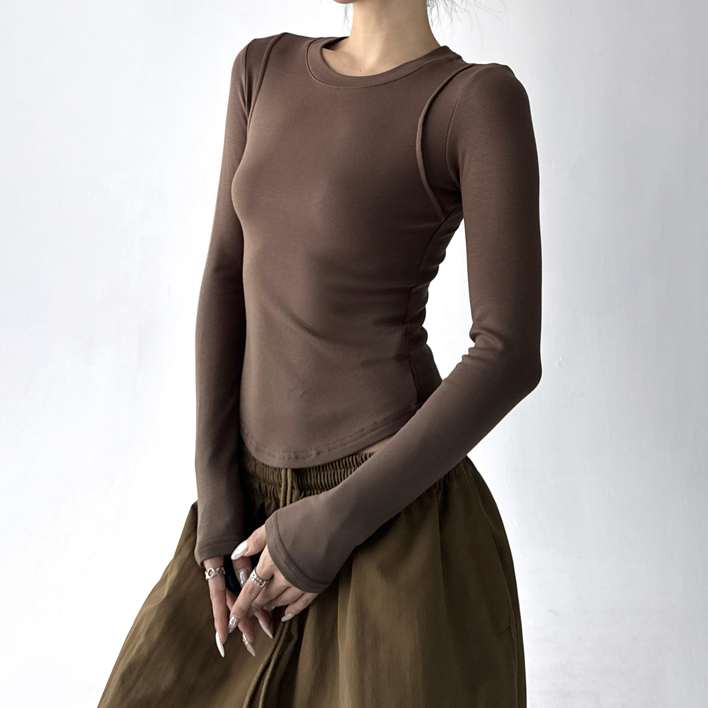 新款 上衣长袖 修身 女正肩秋冬加绒打底衫 T恤女 打底衫 2025冬季