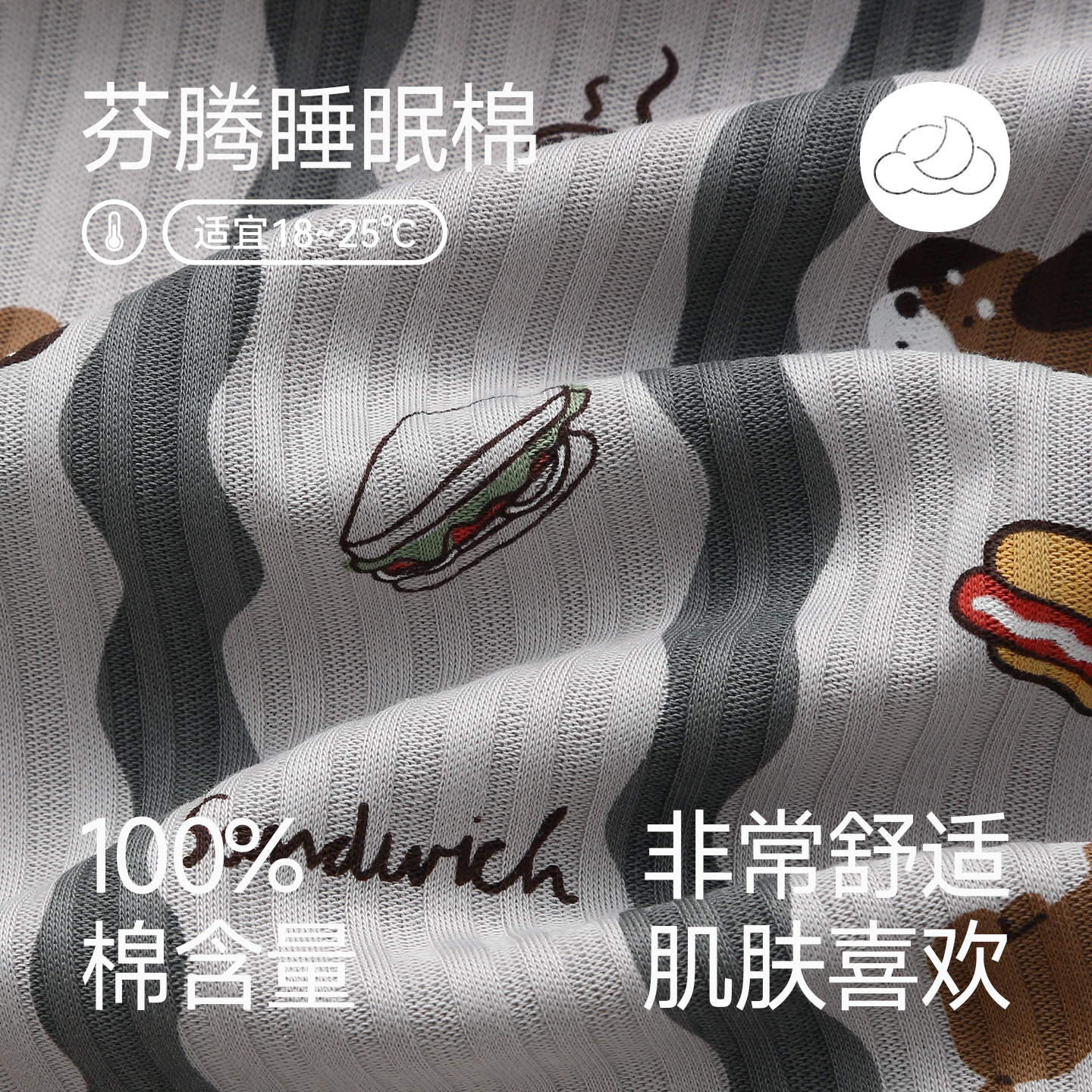 全棉时代睡衣男女士针织家居服情侣套装 7A抗菌除螨纯棉睡衣春秋季