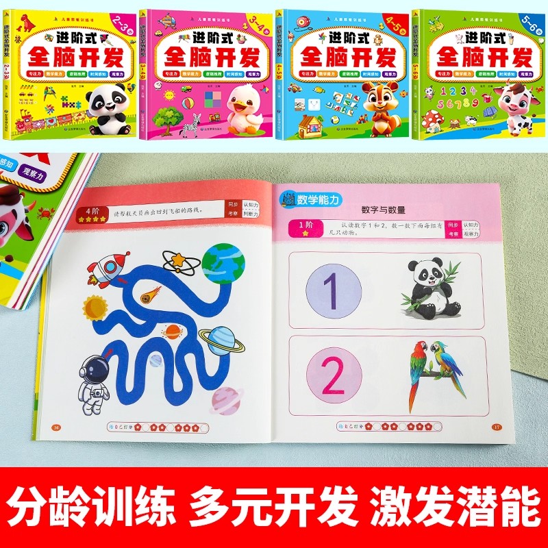 6岁益智早教书三四岁幼儿启蒙认知书籍宝宝智力潜能开发幼儿园连线 全脑开发儿童数学逻辑提升思维训练2 幼儿园儿童进阶式
