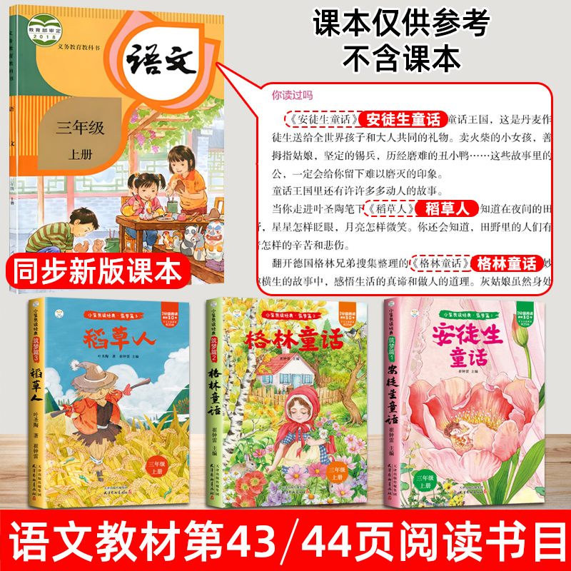 课外书快乐读书吧上册阅读书籍人教版 正版 上伊索寓言克雷洛夫 安徒生故事格林童话稻草人全3册三年级上必读彩图注音版 ⭐读书吧⭐