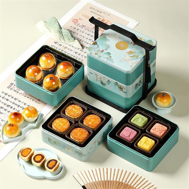 速发云间锦绘礼盒集锦国风糕点广式 月饼三层铁盒团购