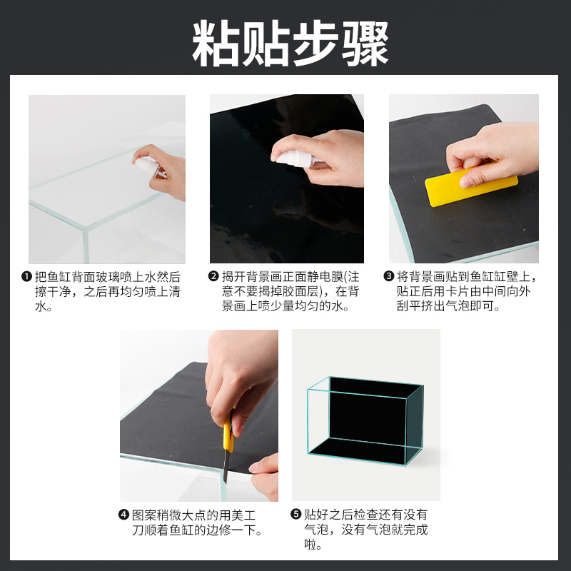 鱼缸背景贴纸缸外静电水族箱专用纯黑色背景壁纸玻璃底部装 饰贴膜