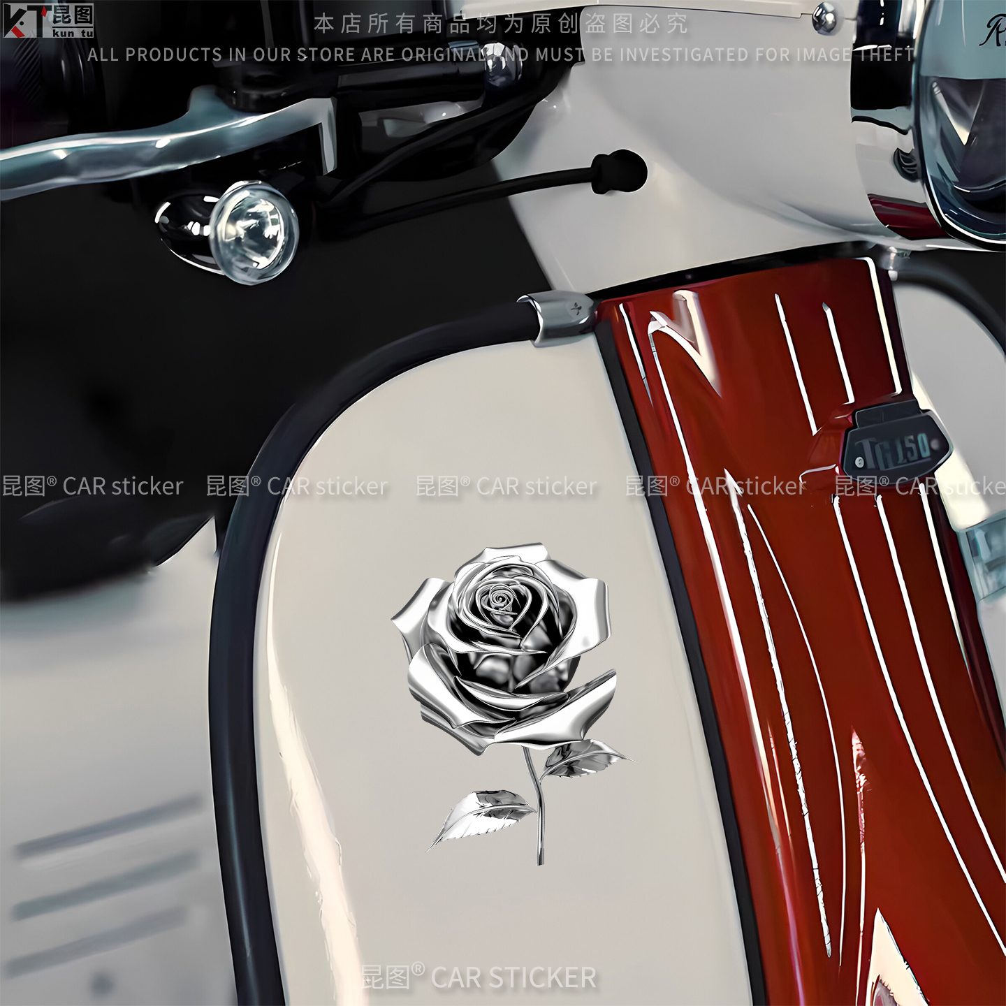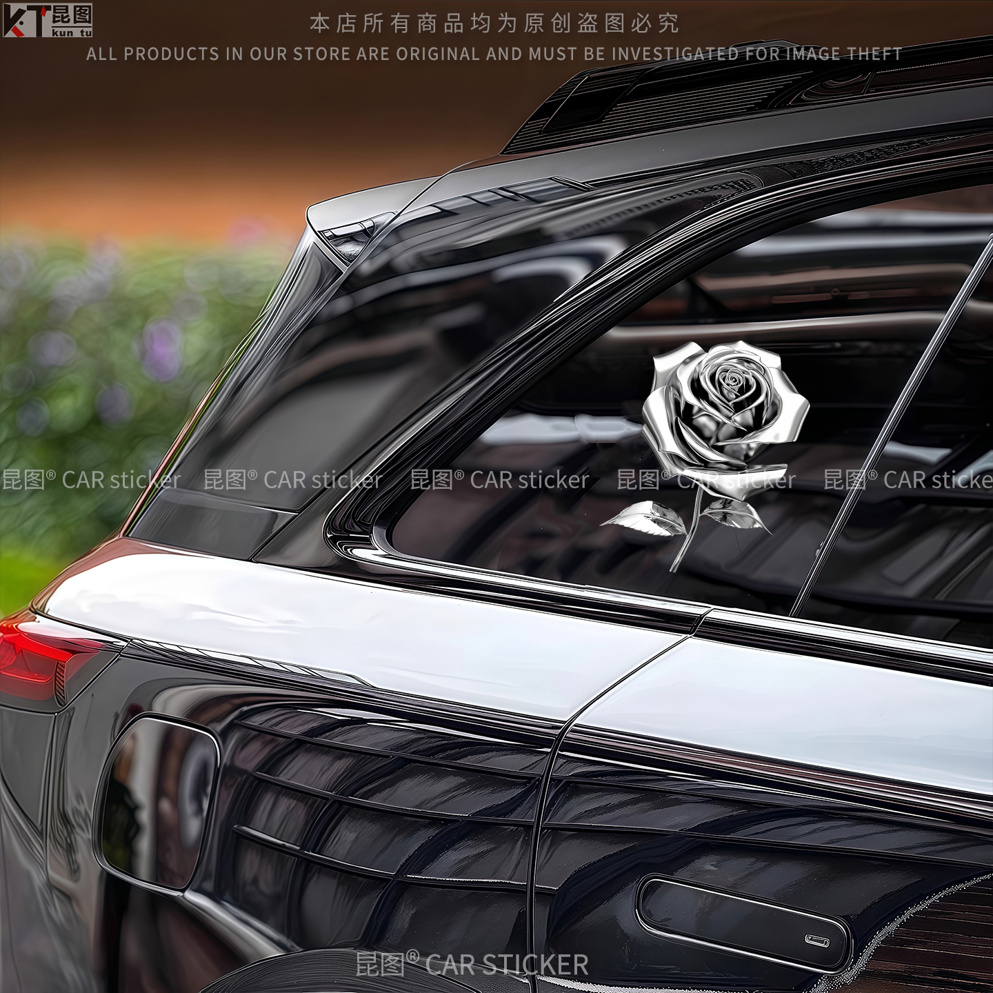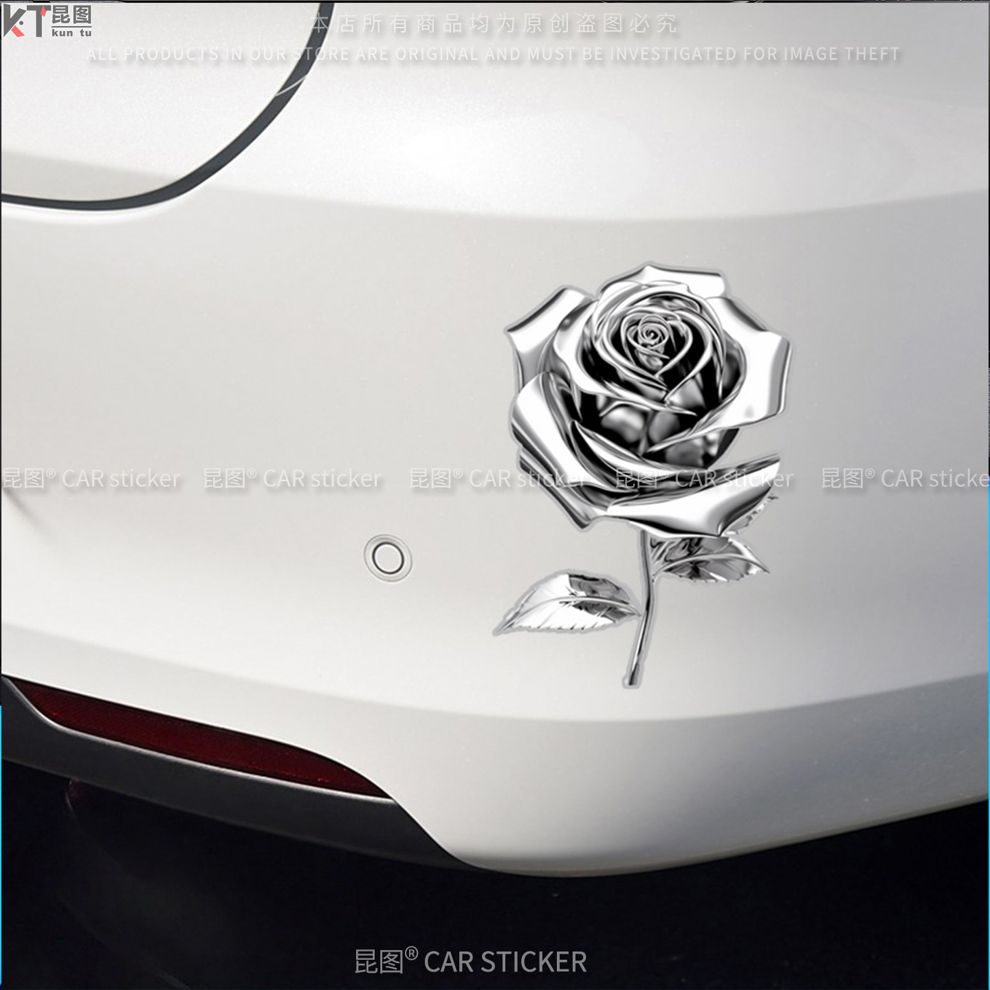 汽车贴纸金属玫瑰3D创意可爱车窗装 饰电动车箱行李箱车身刮痕遮挡