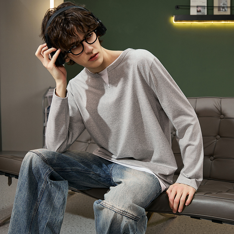 拼接假两件设计感休闲风男士 T恤男款 上衣 圆领长袖 唐狮2025春秋季