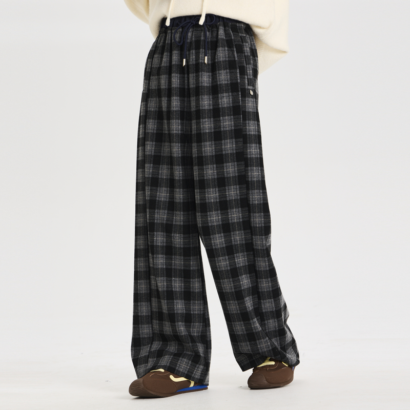 多多一上新秋女大童格子阔腿裤 深秋女 女童百搭格纹直筒长裤