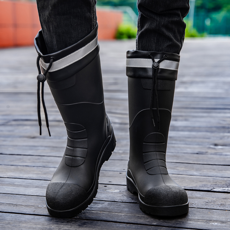 劳保钢头雨鞋 中高筒钢底防砸防刺雨靴厚底钢板建筑安全防水靴胶鞋