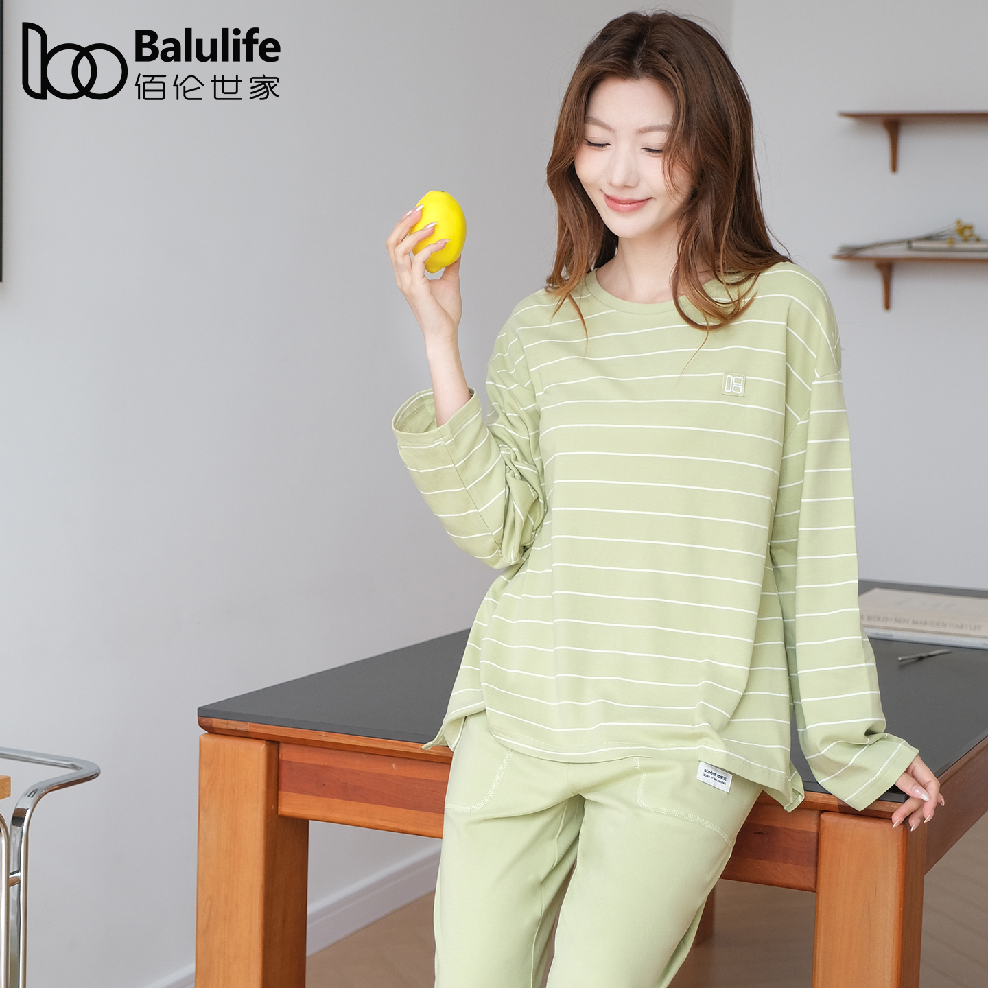 抗菌防螨家居服 舒绒棉条纹圆领套头宽松2025新款 春秋款 睡衣女长袖
