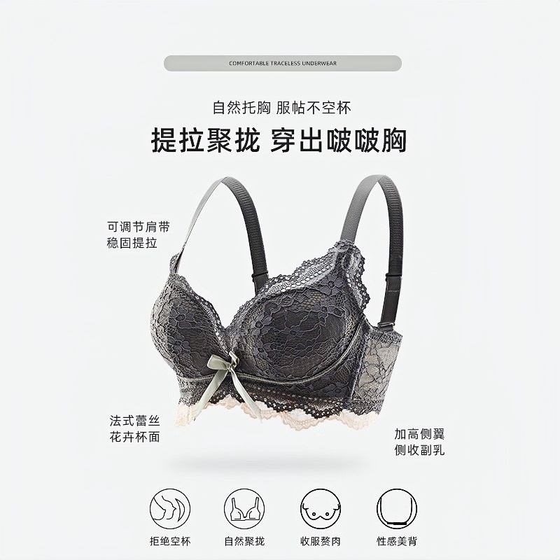 无痕云感裸感内衣女小胸聚拢上托防下垂软支撑无钢圈收副乳文胸罩