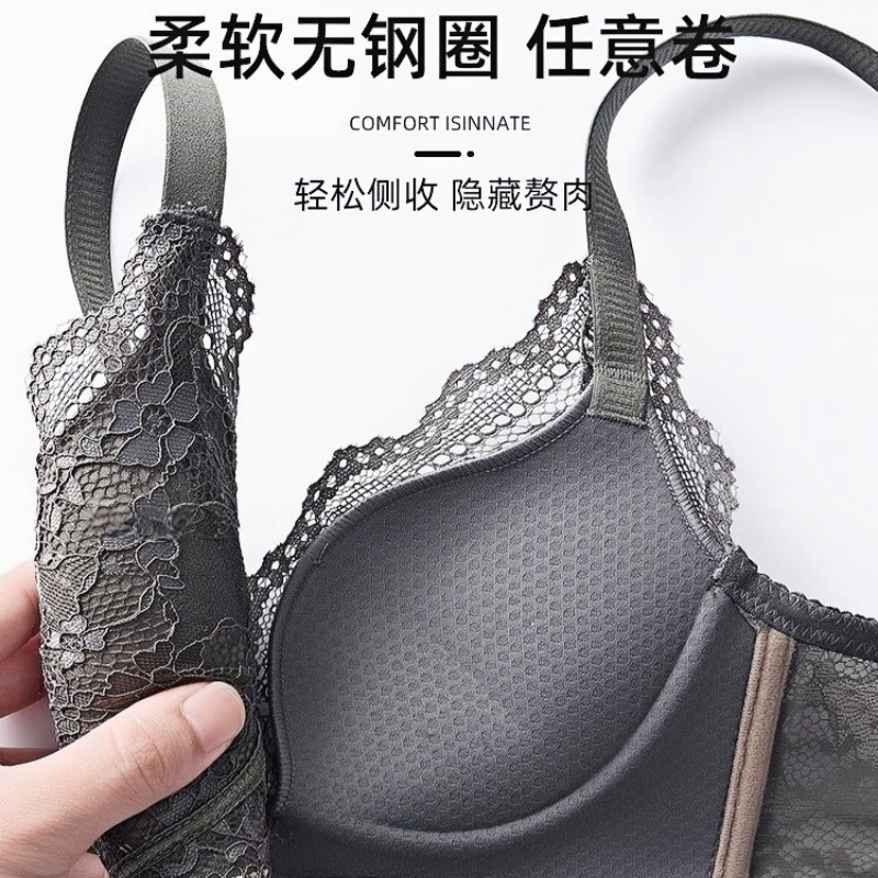 纸片人内衣女大胸显小胸夏季 无痕提拉收副乳防下垂软支撑文胸 薄款