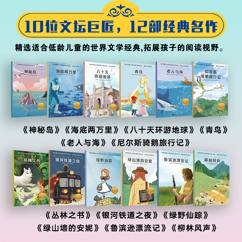 文学丛书.成长 品质 诺奖大师 童课外书世界名著神秘岛海底两万里老人与海 彩绘国际大奖经典 凡尔纳系列 磨铁图书正版 全12册