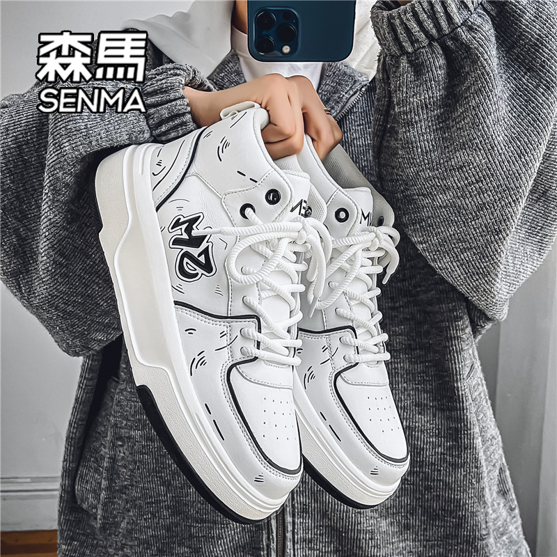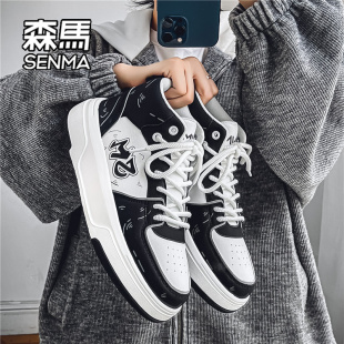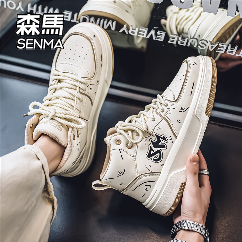 靴子 真皮防水厚底增高工装 森马马丁靴男秋季 高帮百搭休闲白色板鞋