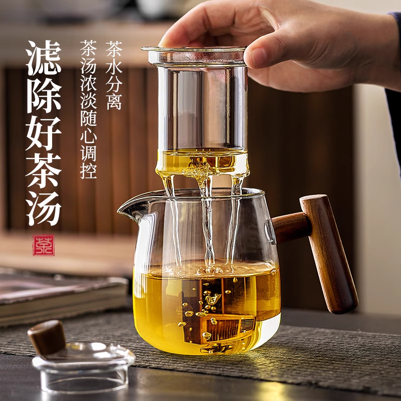 耐热玻璃飘逸杯一键出水泡茶壶家用2025新款 滤茶器 茶水分离按压式