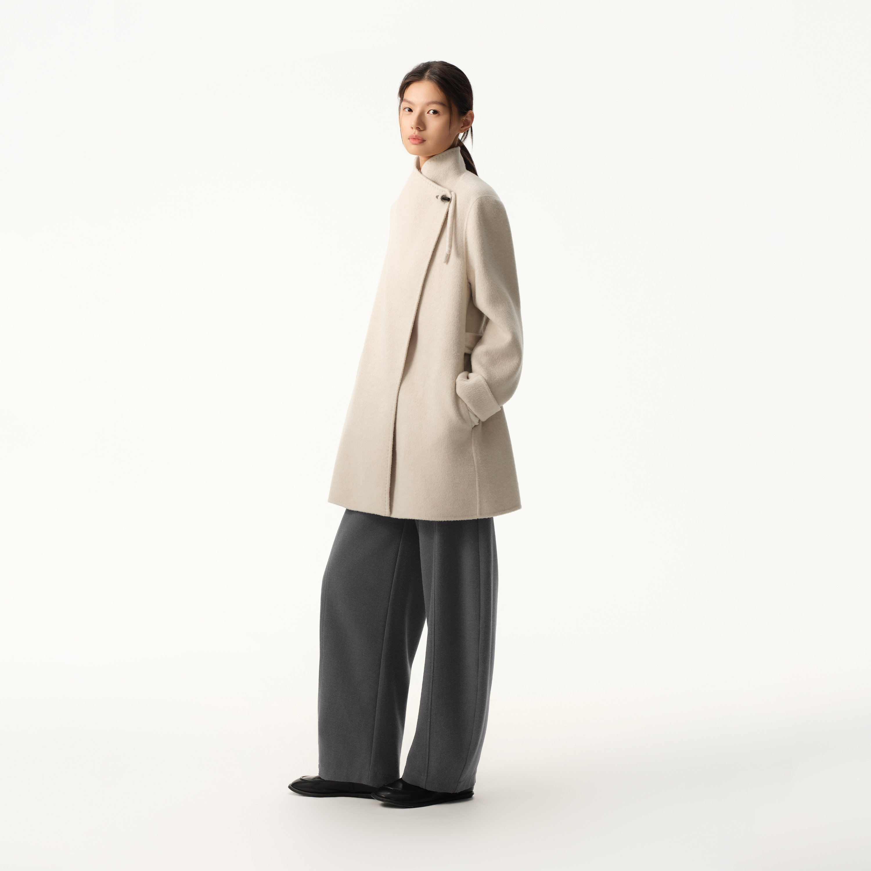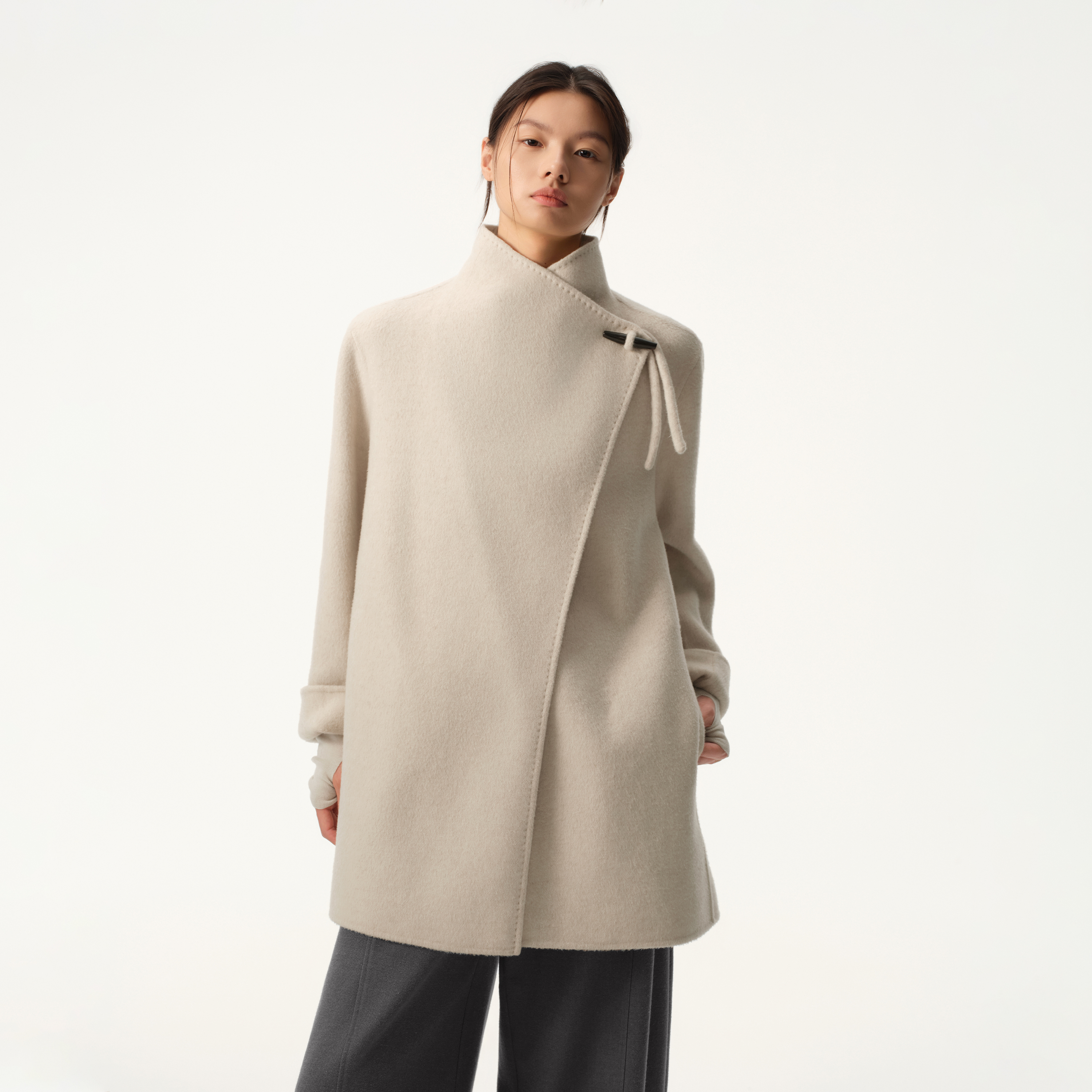 圆领大衣女小个子气质毛呢外套 高端羊毛双面呢短款 2025年春季 新款