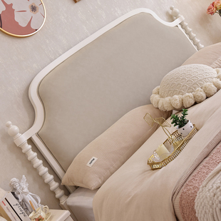 美式 实木床1.8米双人床现代简约轻奢主卧婚床1.5米软包床奶油风