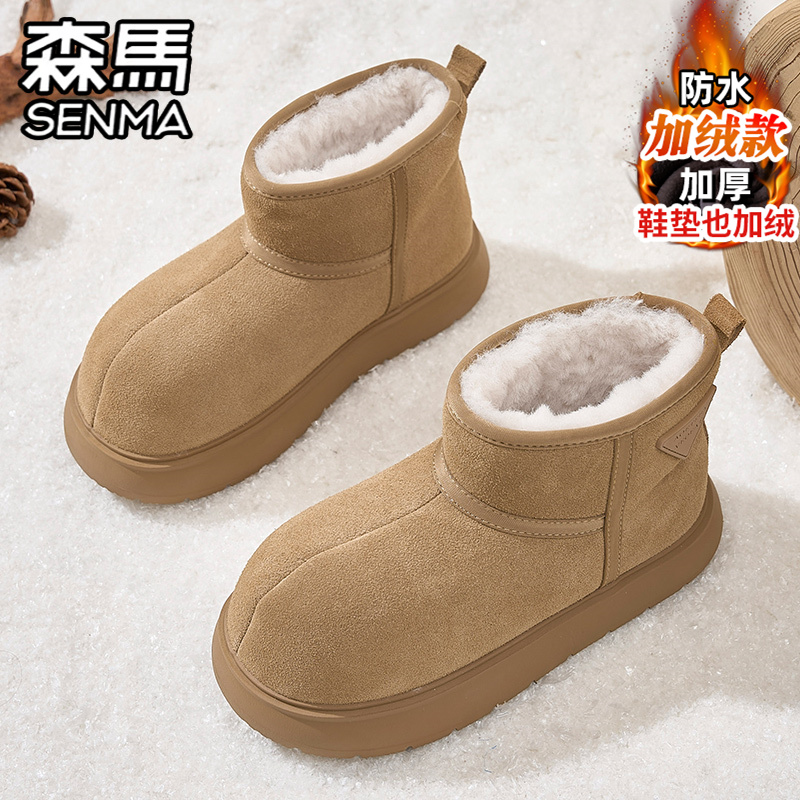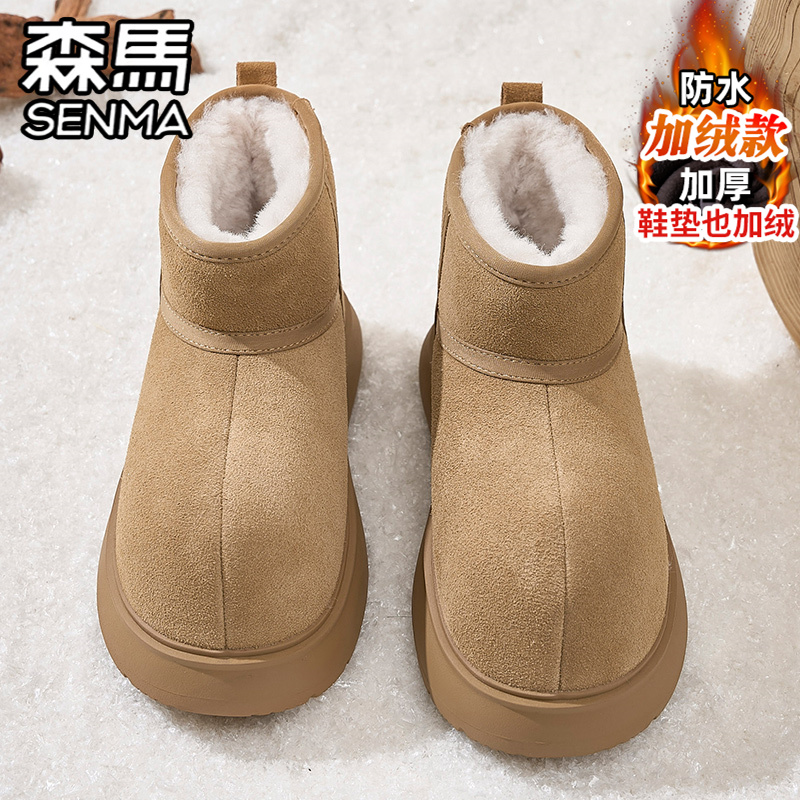 户外防滑厚底增高保暖面包鞋 加绒加厚东北棉鞋 冬季 森马雪地靴女鞋