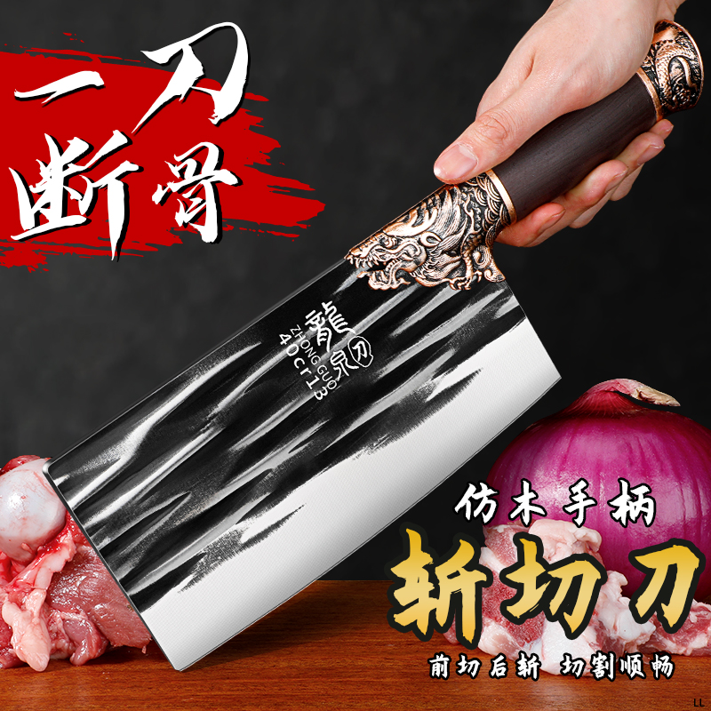 龙泉锻打菜刀菜板二合一厨房厨具刀具套装 家用砧板切片砍骨