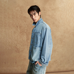 新品 外套2025秋季 立领通勤行政夹克肌理廓形教练茄克男士 GXG男装