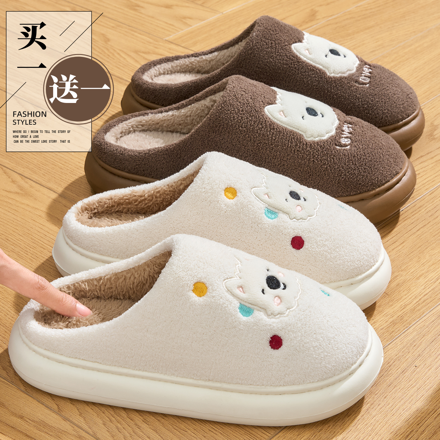 室内家居情侣保暖毛绒拖鞋 买一送一棉拖鞋 秋冬季 2025新款 男冬 女款