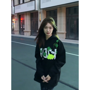 美式 外套宽松chic慵懒风上衣 复古潮牌连帽卫衣女春秋oversize薄款
