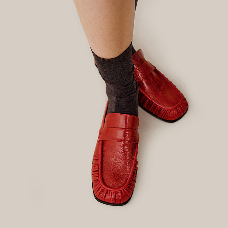 秋季 软雕塑美学 新款 方头皱漆牛皮乐福鞋 OL风小皮鞋 Murmure