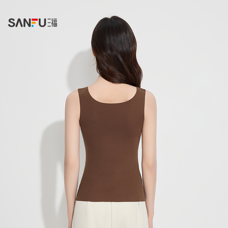三福女冬季 简约外穿保暖内搭上衣509650 随意裁宽肩磨毛背心