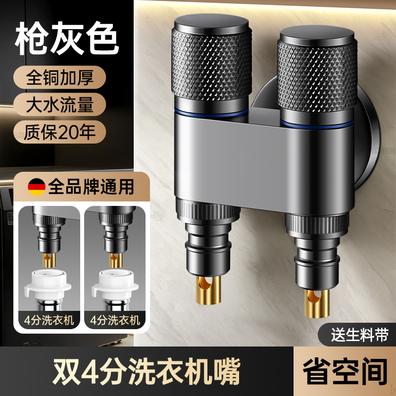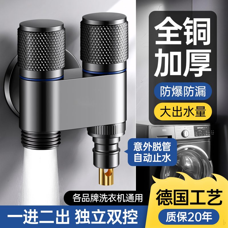新国标洗衣机水龙头一进二出角阀家用三通自动止水阀铜一分二接头