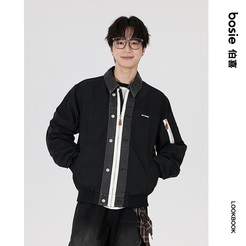 查尔斯桃心2025年新款 可拆卸连帽牛仔夹克男磨白单排扣多口袋外套