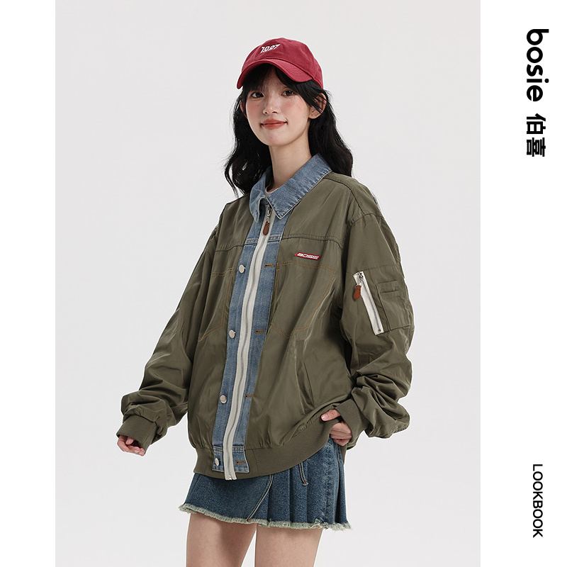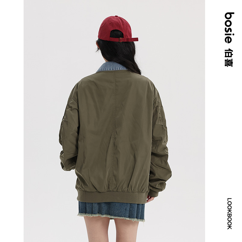 潮 oversize抽绳撞色夹克时尚 森马外套女立领格纹肌理秋季 新款