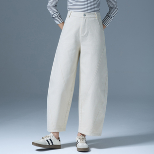 子宽松小个子九分直筒阔腿裤 高腰哈伦裤 女春秋新款 浅色休闲镰刀裤