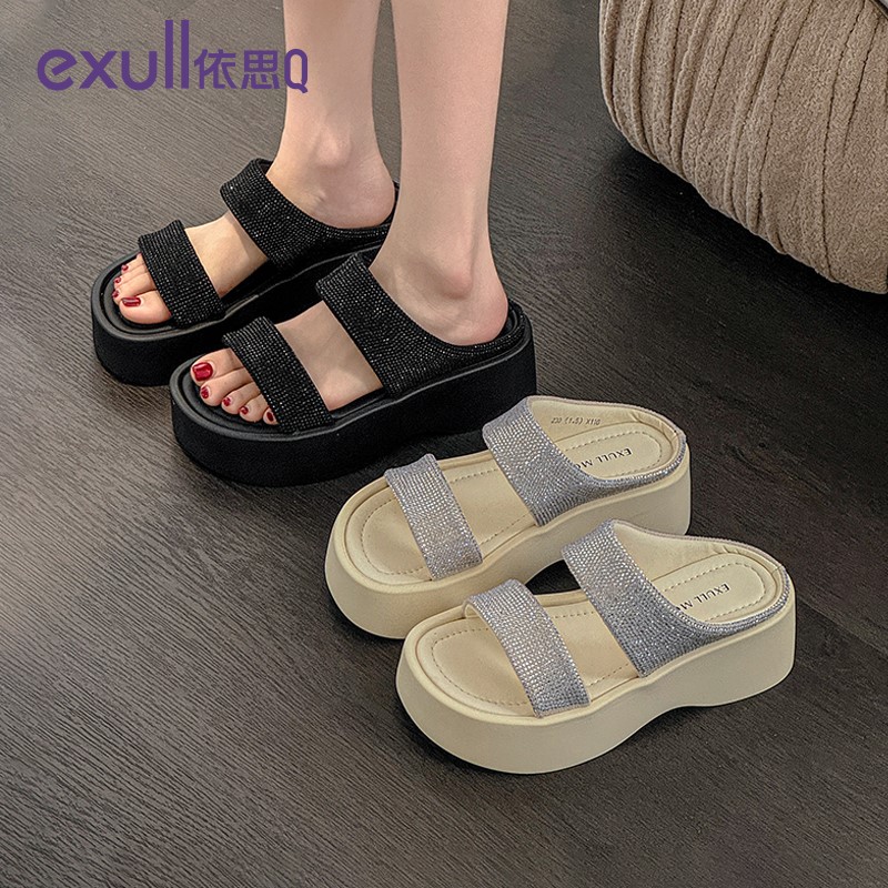 依思Q凉拖鞋 exull 清仓 女日常外穿平底软底厚底一字拖鞋 断码